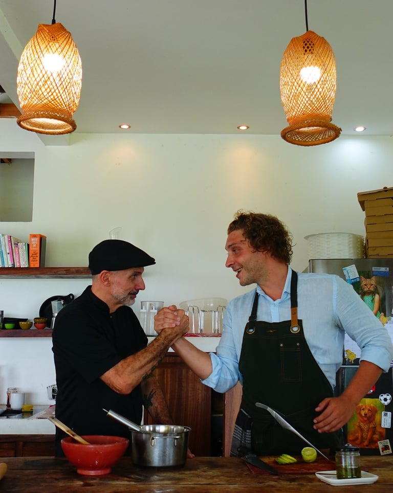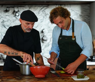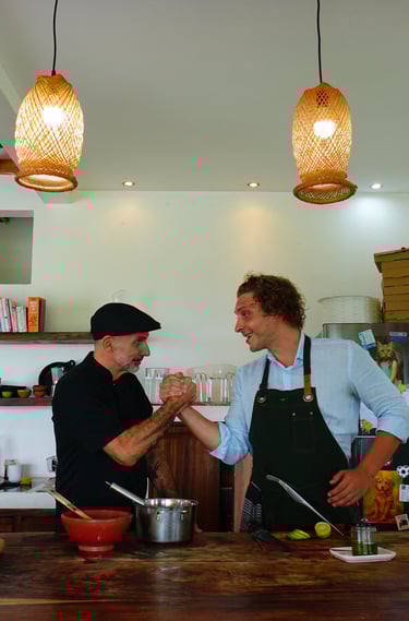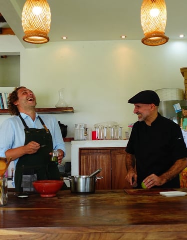 We are Vittorio and Andrea, chefs from Emilia-Romagna, the birthplace of handmade pasta. Our path led us through Michelin-starred kitchens, luxury yachts, high end dining in Los Angeles and London and to running successful venues in Parma. Today, in Costa Rica, we created Via Emilia: where Italian tradition embraces the jungle, the ocean, and local ingredients.